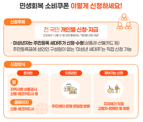 - 민생지원금은 온라인과 오프라인 두 가지 방법으로 신청할 수 있어요.