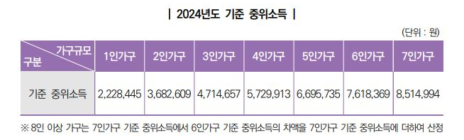- 가구소득 : 중위소득 250% 이하